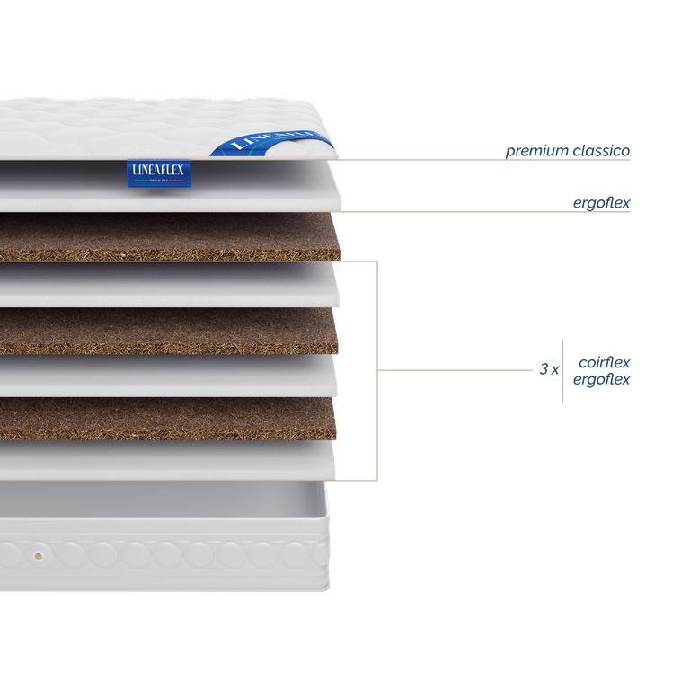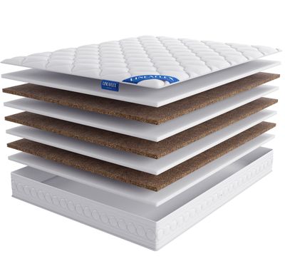 Состав матраса: Чередование слоев пены Ergoflex 3 см. (4 шт.) и кокосовой койры 3 см. (3 шт.)