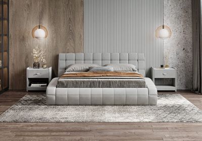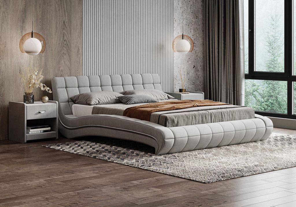 Изящная и элегантная интерьерная кровать с изысканным внешний видом и плавными линиями. Модель изготовлена из ДСП и МДФ. Обивка кровати имеет 12 вариантов цветового исполнения: из экокожи, глазго и велюра.