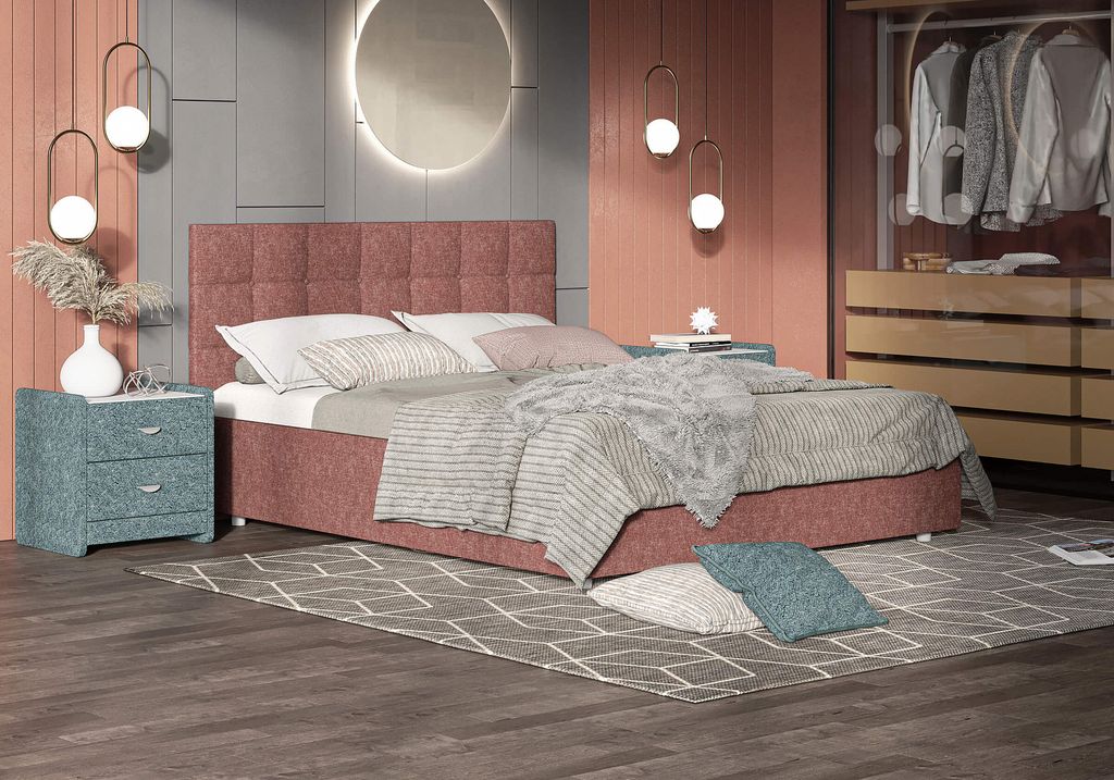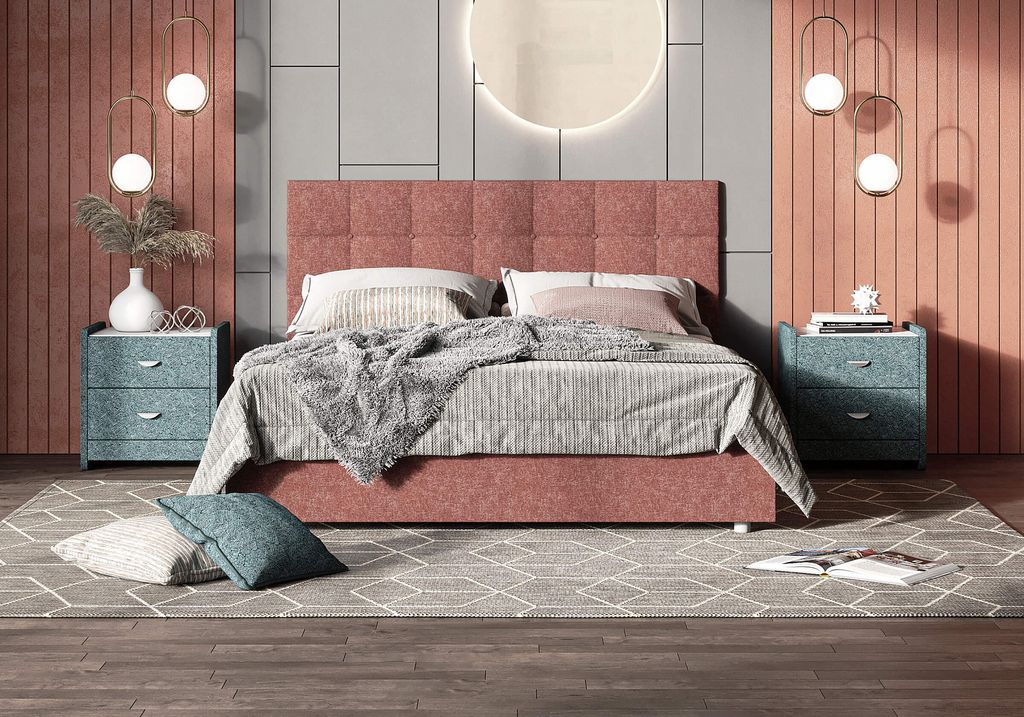 Элегантная интерьерная кровать с изголовьем, украшенным декоративными пуговицами, которые можно заменить на стразы.