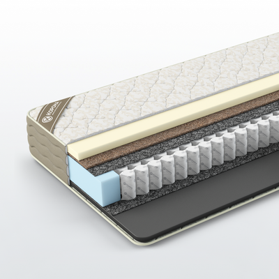 - Сторона 1: термовойлок, высокоэластичная пена "Carbon Foam" с угольной пропиткой 25 мм, кокосовая койра 10 мм,меморикс 40 мм.