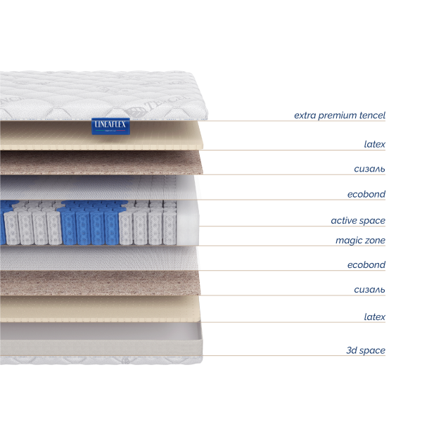 Чехол: EXTRA PREMIUM ТENCEL - съемный чехол, выполненный из натуральной ткани Тencel, стеганной на холлофайбере. Боковина AIR CYCLE.