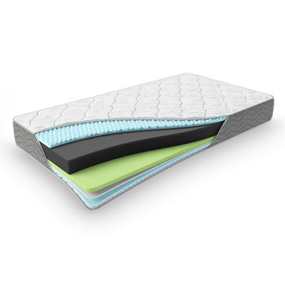 - 2 сторона: ортопедическая пена 30 мм, бикоттон 10 мм, массажная пена 30 мм.