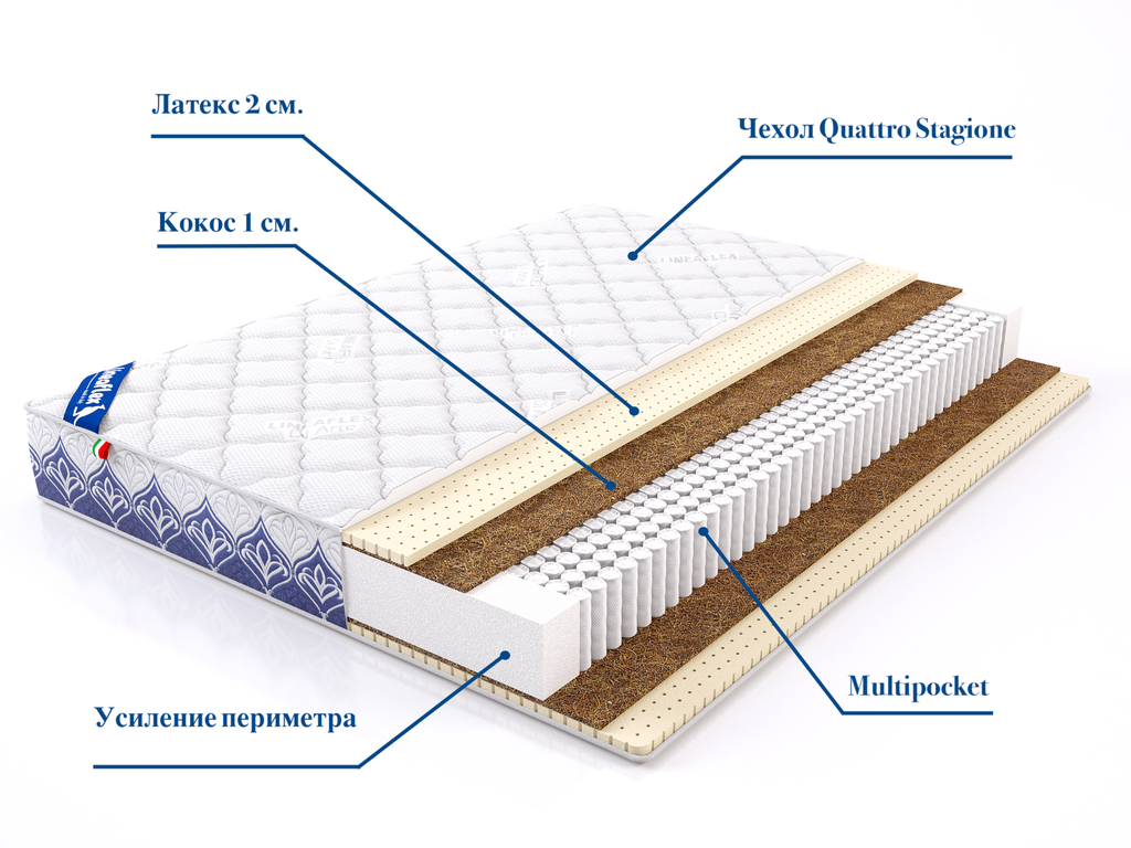 Независимый анатомический пружинный блок Multipoсket 520 пружин на м2. Сиcтема усиления периметра.