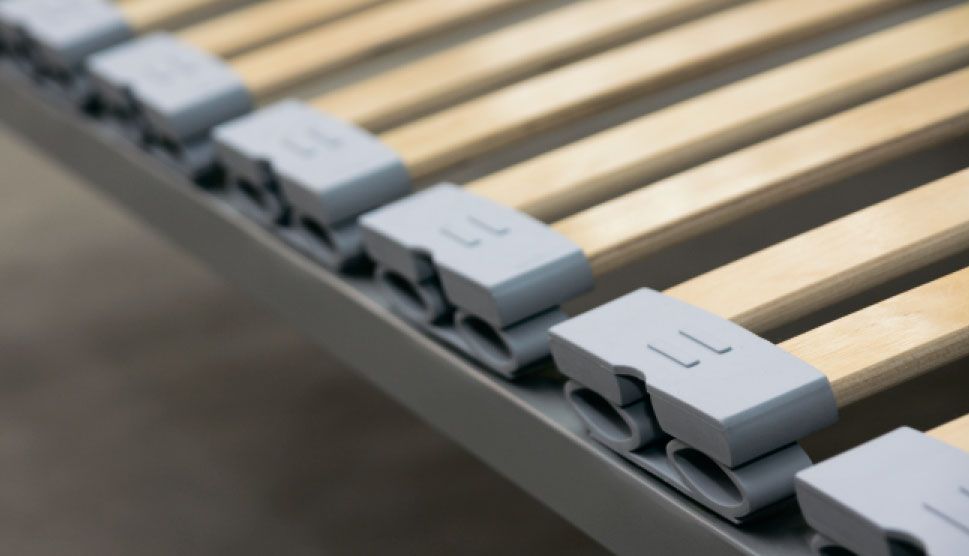 - Латодержатели-амортизаторы, выполнены из стойкого к нагрузкам каучука, имеющего две степени свободы, благодаря чему каждая лата работает в двух плоскостях.
