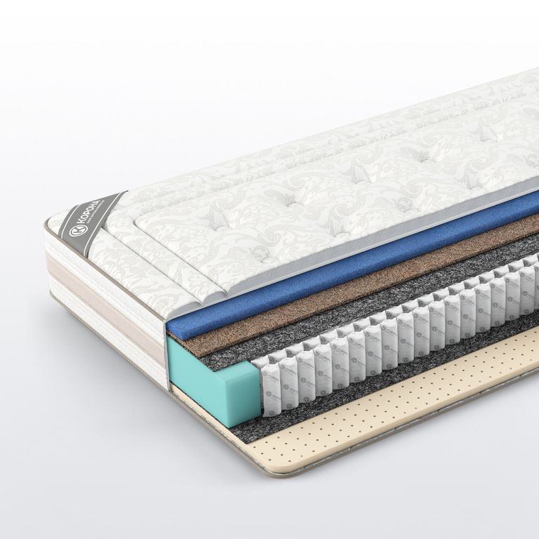 Cостав: 1 сторона: термовойлок, , высокоэластичный пенополиуретан «ELAX» 25 мм., кокосовая койра 10 мм.