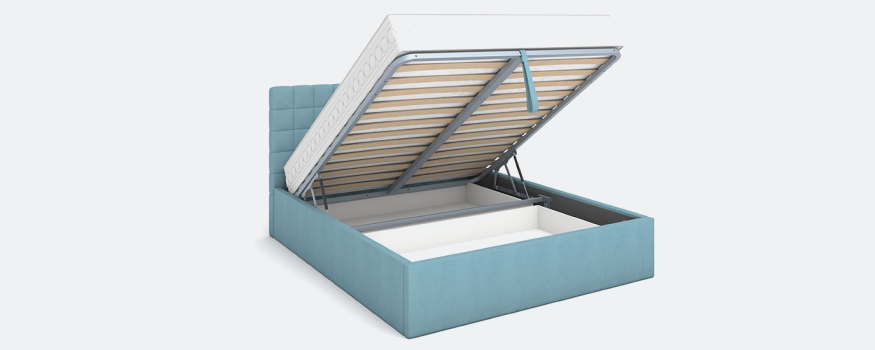 В комплектацию кровати с подъемным механизмом так же входит настил напольный для бельевого ящика.