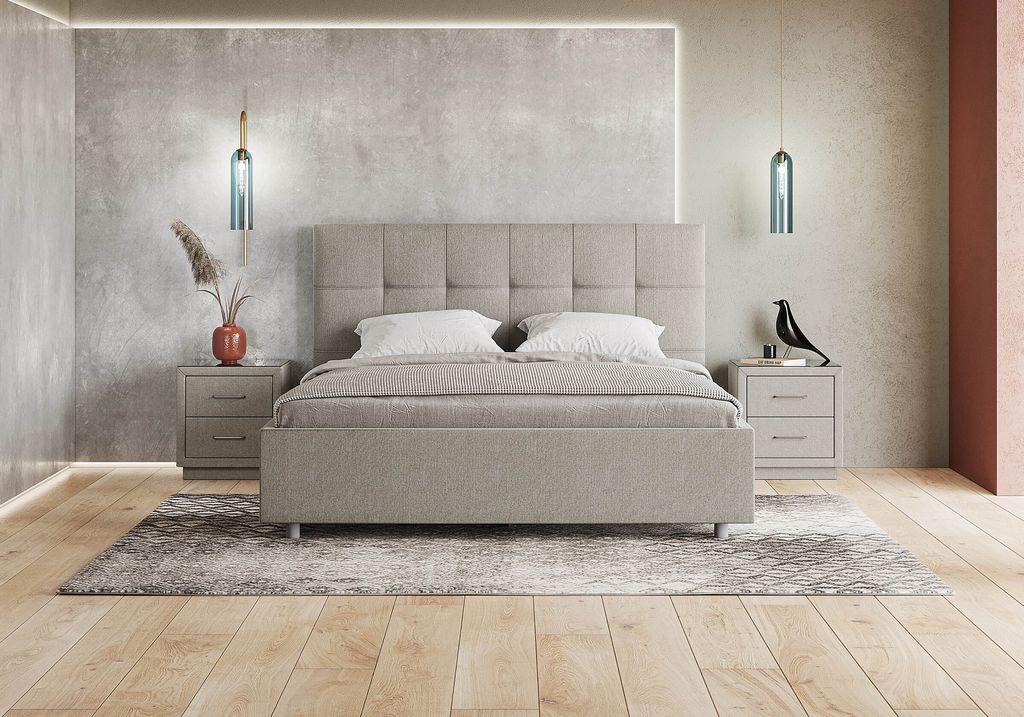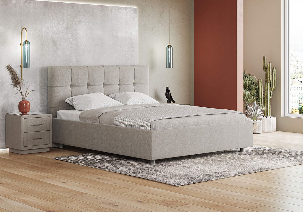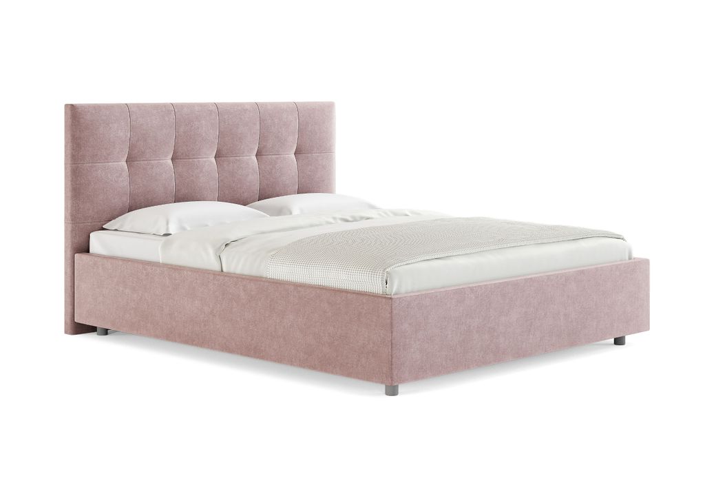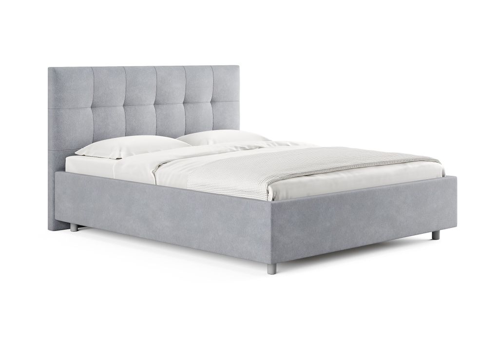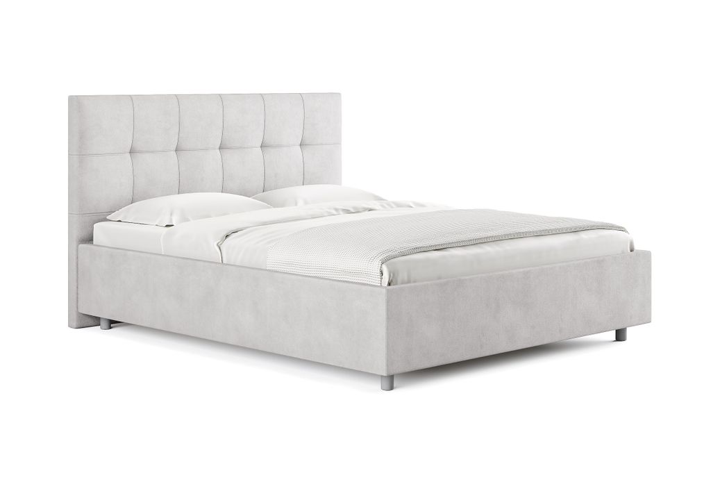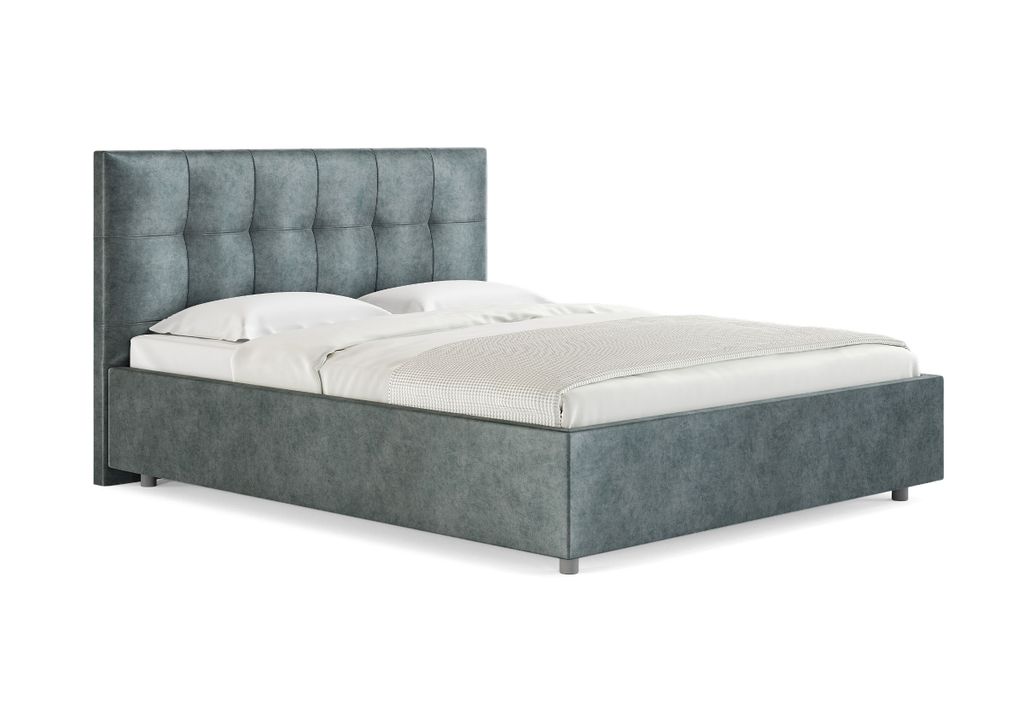 Лаконичная интерьерная кровать с изголовьем, украшенным декоративной строчкой. Модель изготовлена из ЛДСП. Обивка кровати имеет 12 вариантов цветового исполнения: из экокожи, глазго и велюра. Обратная сторона изголовья обита спандбондом, но, при желании, её можно выполнить из основного обивочного материала.