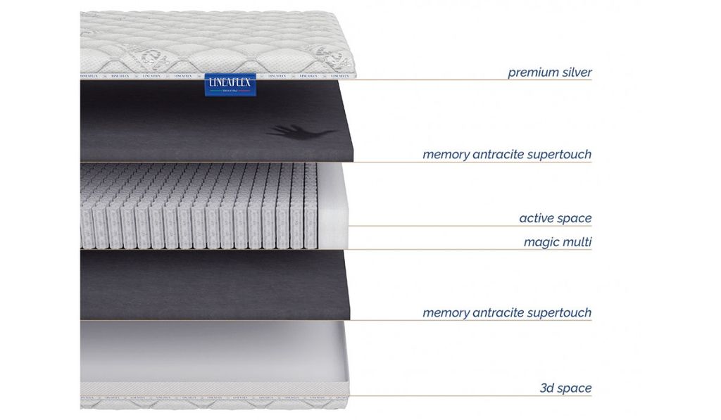 Чехол: PREMIUM SILVER - съемный трикотажный чехол с серебряными нитями, стеганный на холлофайбере. Боковина AIR CYCLE.