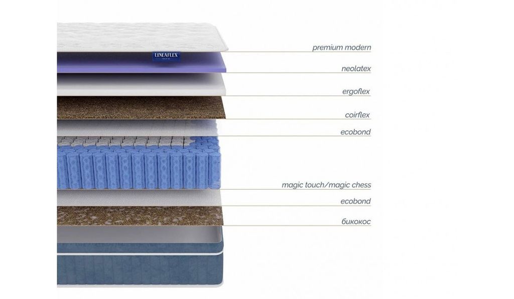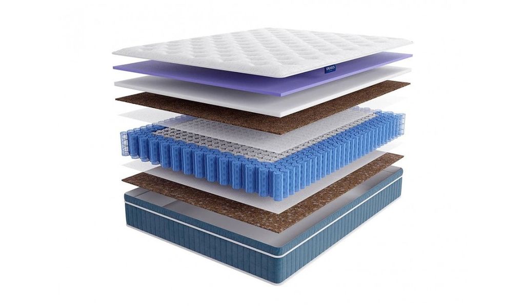 Состав: Пена Neolatex 2 см, пены Ergoflex (пенополиуретан) 2 см, кокосовая койра 1 см.