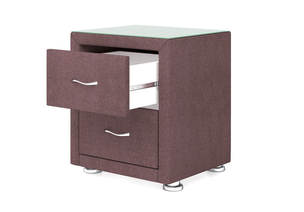 Прикроватная тумба с двумя выдвижными ящиками сочетается с любыми моделями кроватей, органично вписывается в интерьер практически любого стиля. Каркас тумбы выполнен из ДСП. Каркас тумбы и фасад ящиков покрыты обивочным материалом.