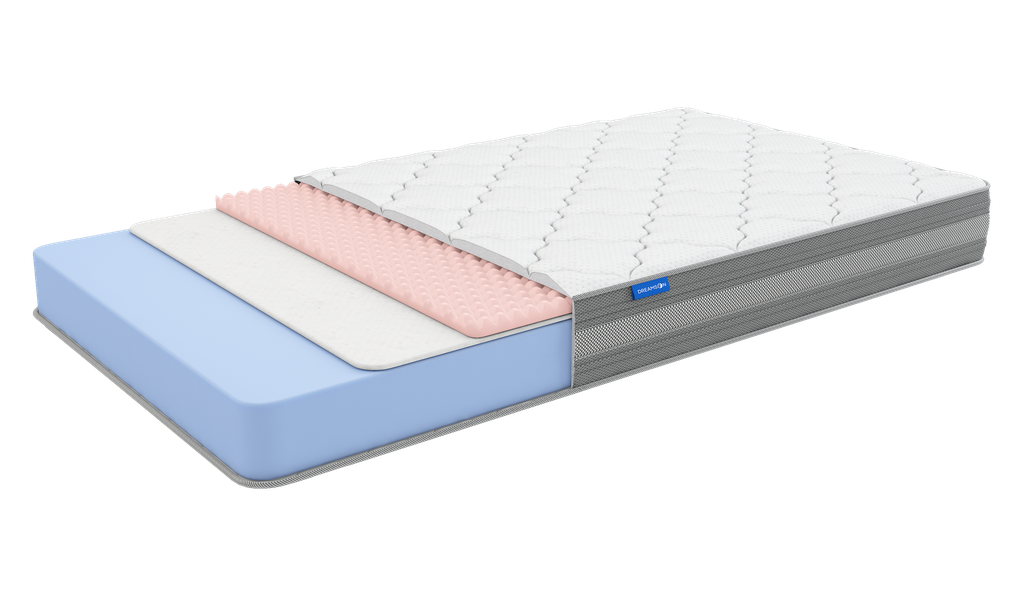 Состав: Цельный блок ортопедической пены 140 мм, бикоттон10 мм, пена с массажным эффектом 30 мм
